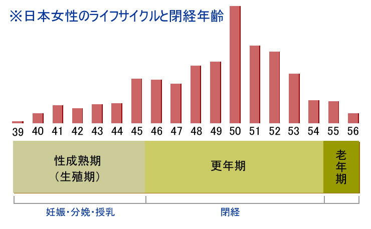 日本人の閉経年齢は平均50歳と言われていますが、個人差があり、早ければ40歳代前半に更年期になる例もあり、人によって異なります。